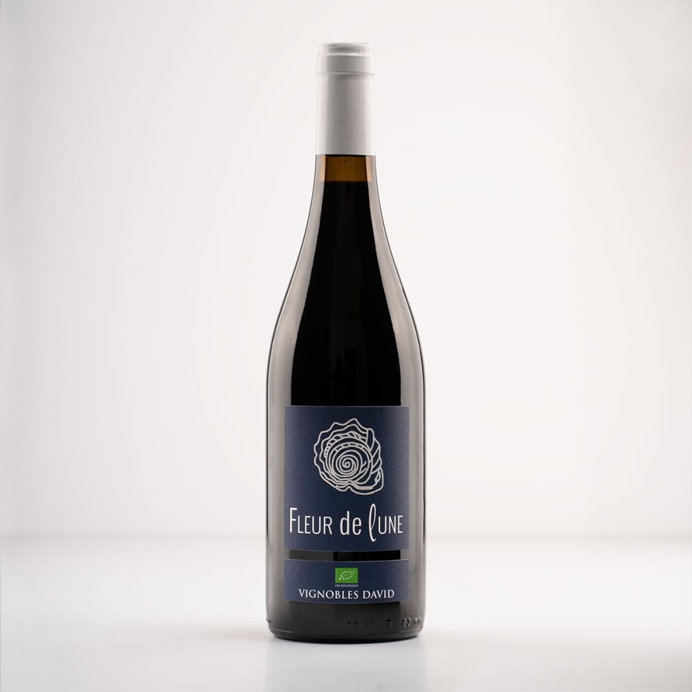 2021 Fleur de Lune Rouge fra Vignobles David er en rødvin fra Languedoc-Roussillon-regionen i Frankrig. Den er lavet på økologisk dyrkede druer og er klassificeret som IGP Pays d'Oc. Vinen er en blanding af Syrah, Grenache og Mourvèdre.