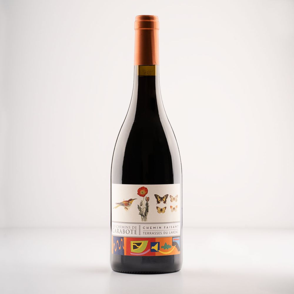 Chemin Faisant 2021 kommer fra appellationen Terrasses du Larzac i Languedoc, hvor vinmarkerne ligger på stenet jord med store galets roulés og gode temperaturudsving mellem dag og nat. Druerne (Carignan, Grenache og Syrah) dyrkes økologisk, og vinen er lavet med minimal indblanding – maceration, moderat tid på skind og ingen eller meget begrænset fadlagring. Stilen er designet til at vise ren frugt og terroir uden overflod af egetræ, med friskhed og karakter fra de varme sydlige marker kombineret med mineralitet og finesse.